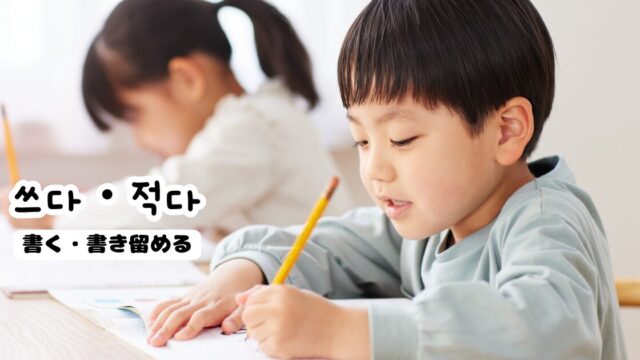 動詞韓国語で「書く・書き留める」쓰다・적다 2025年10月14日 leeminji GeojeD 쓰다・적다 韓国語の「쓰다」と「적다」は、どちらも日本語では「書く」と訳されますが、ニュアンスと使われる場面が異なります。 쓰다(書く) 何かを創作したり、文章・ …