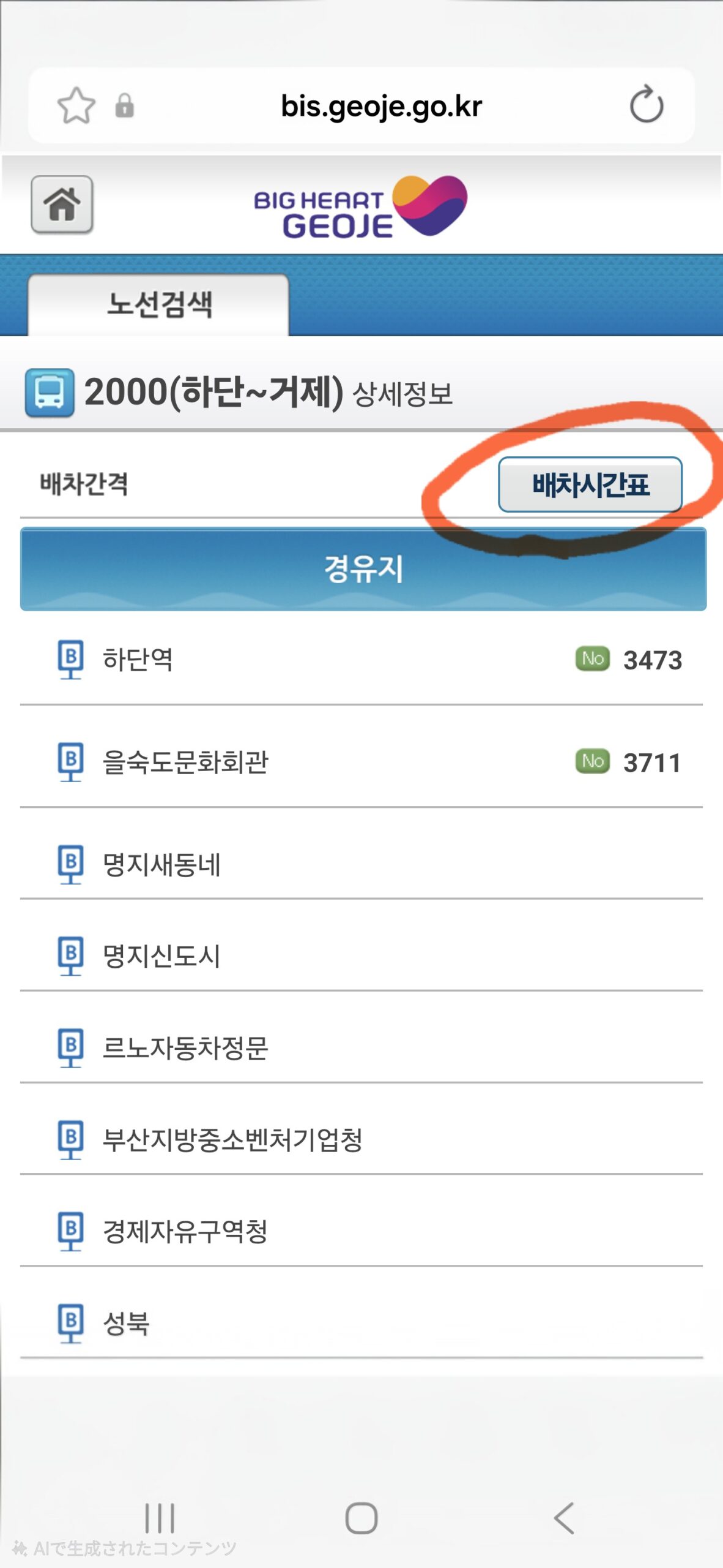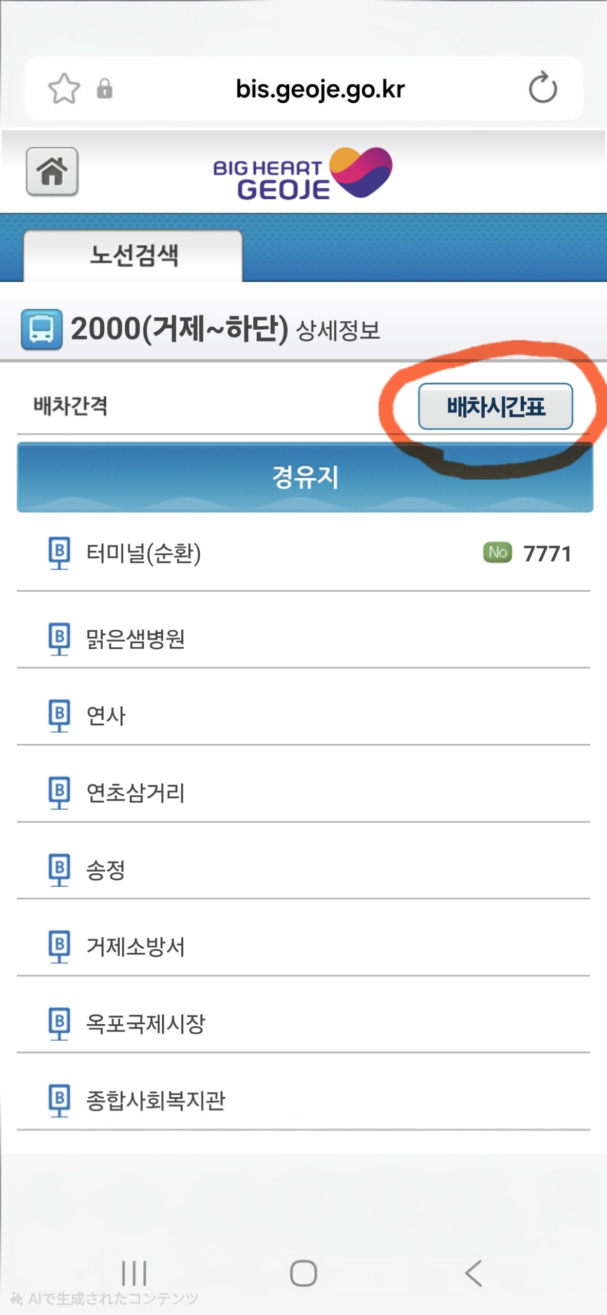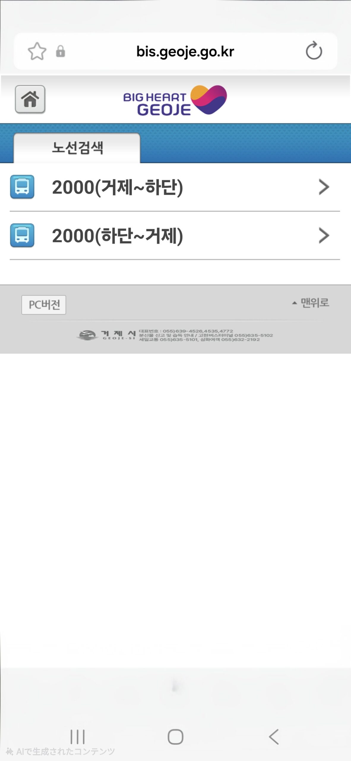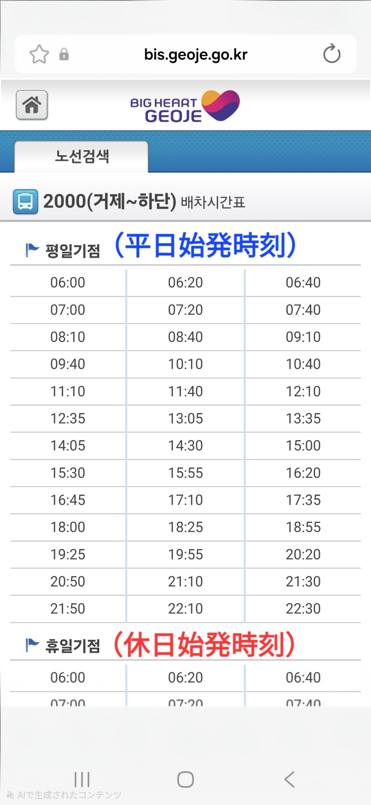 2000バスの情報は「BIG HEART GEOJE」の路線案内に詳しく載っています。